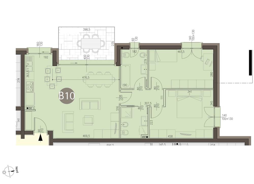 In centro paese proponiamo in locazione appartamento al 2° piano di mq 97 ca., composto da ingresso, soggiorno con cucina a vista, due camere, due bagni, terrazzo e box doppio.