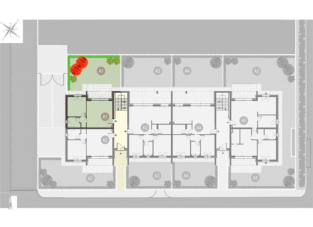 Bilocale al piano terra composto da soggiorno con cucina, camera, matrimoniale, disimpegno, e bagno.