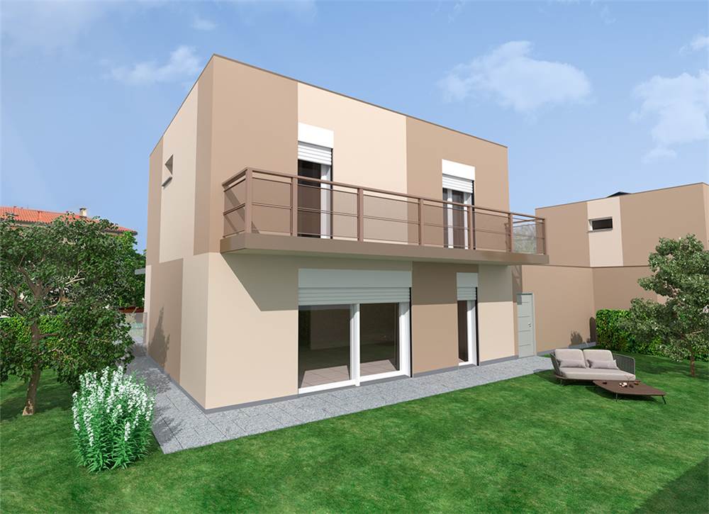 Proponiamo villetta a schiera di testa, composta da ampio soggiorno con angolo cottura, tre camere, due bagni, e giardino privato di mq 160 ca., e box doppio al piano terra.